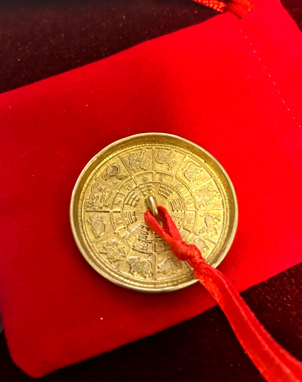 You begin by introducing a special brass antique which has a mirror finish on one side and zodiac symbols on the other. The mirror is handed for examination as a card the Queen of Hearts is selected by your friend.