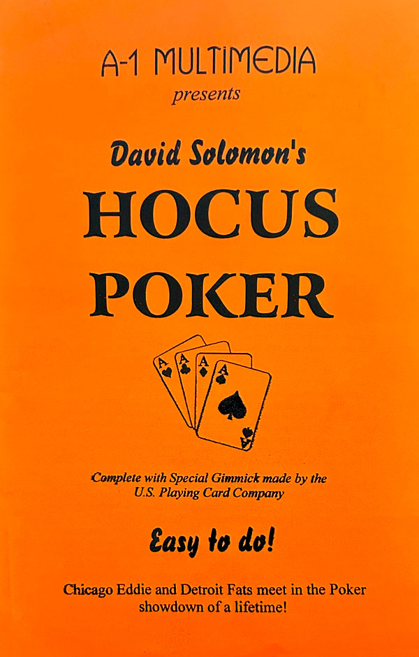 Comes with custom printed and treated Poker Size Bicycle cards made by the US Playing Card Company, and written instructions. The cards come in a plastic wallet. These came from David Solomon’s personal inventory. An A-1 Multimedia product.