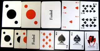 This is a grouping of some playing cards from that company that have been in storage for more than fifty years. These are not cards as we know them today. They are playing cards that are printed on cardboard and many of them are gaffed for various packet tricks and routines that Sherms released. These are just loose cards without any instructions.