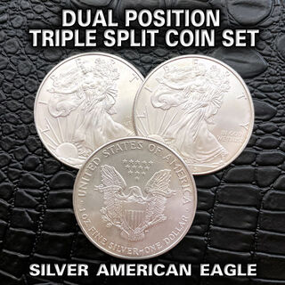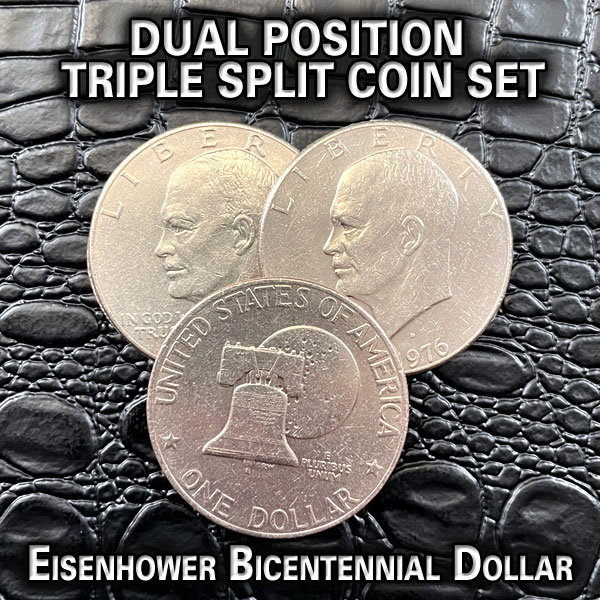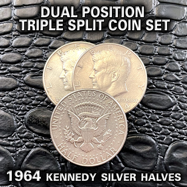 Comes with a triple split set of magnetic coins that are imbedded with Ted Bogusta’s Dual Position Magnets. A set includes three coins (two North Heads and one South Tails). Available using different types of coins. No instructions included.