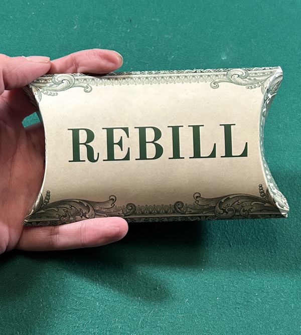 Each bill can only be used once since it is really destroyed. Once restored, the bills can’t be examined but can be seen on all sides, casually handled by a spectator, and even spent.
