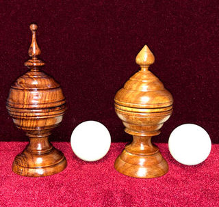 This version is not as exotic but also not as delicate. It is more suitable for repeated use and will survive being accidentally dropped. The overall size is 4.5-inches high and 2-inches wide (size may vary by as much as half an inch). Includes one Ping Pong Ball Vase, a shell, and a ball. No instructions.