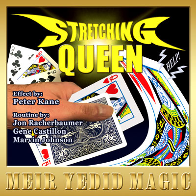 You begin by removing three cards from your deck. The Queen of Hearts and the two black nines. All the cards are cleanly shown as you place the Queen face up between the two face down nines. In an eerie visual the Queen begins to stretch to one-and-a-half times its length for an impossible visual.