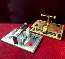 A card clip with a really clever added application. Besides being a card clip that protects your cards and keeps them flat it can also double as a smart-phone stand that can be used to play music or show video/photos during your performance. It can also be used to hold a small packet of cards in a vertical position and even hold a prediction that can remain in full view.