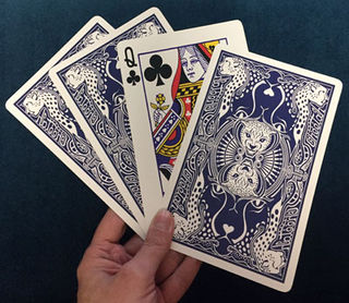 You display four Jumbo blue-backed cards (said to be four queens). A spectator selects one of the queens. The named queen is shown to be the only one that is face up. It is also the only one with a red back. To everyone's amazement the other three cards are shown to be blank.