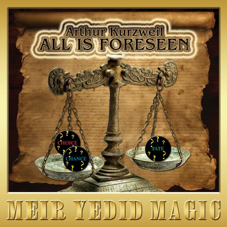 The props included in this mentalism effect are five 4” by 4” plaques of laminated plastic material. Three feature the words “CHOICE,” “CHANCE,” and “FATE.” On a fourth is written the adage, “Everything is foreseen, yet free will is given,” and the final plaque displays a scale … with which to weigh one’s decisions. With these items in play the concepts of choice, chance, and fate are put to the test: A spectator is allowed to choose any of the words freely, and the performer proceeds to prove that the outcome was predicted. Yes, this uses a classic method to achieve its results, but the use of terms associated with the premise makes for a test in which the item mentally selected is not arbitrary—it has meaning and speaks to a spectator’s personal beliefs.